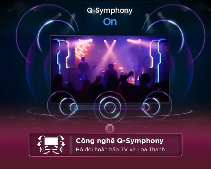 Q-Symphony: Đồng bộ âm thanh từ loa TV và loa thanh Samsung, tạo hiệu ứng âm thanh toàn diện.