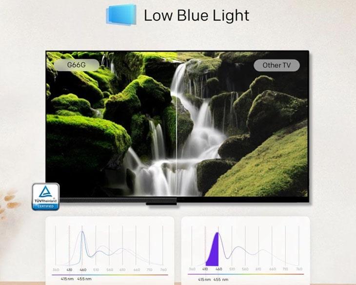 Skyworth G6500G là dòng TV tiên phong trong việc quan tâm đến sức khỏe thị giác của người dùng. Mỗi model đều sở hữu công nghệ Flicker-Free (khử nhấp nháy) và Low Blue Light (giảm ánh sáng xanh độc hại trong dải 415–455nm). Điều này giúp hạn chế tình trạng mỏi mắt khi xem TV trong thời gian dài, đặc biệt an toàn với trẻ nhỏ và người lớn tuổi.