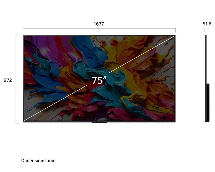 – 75QNED9MASA: 167.0 x 97.2 x 5.16 cm – 30.7 kg