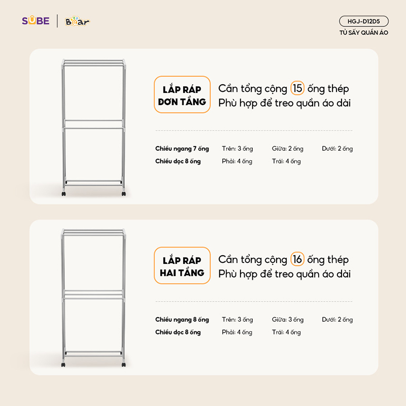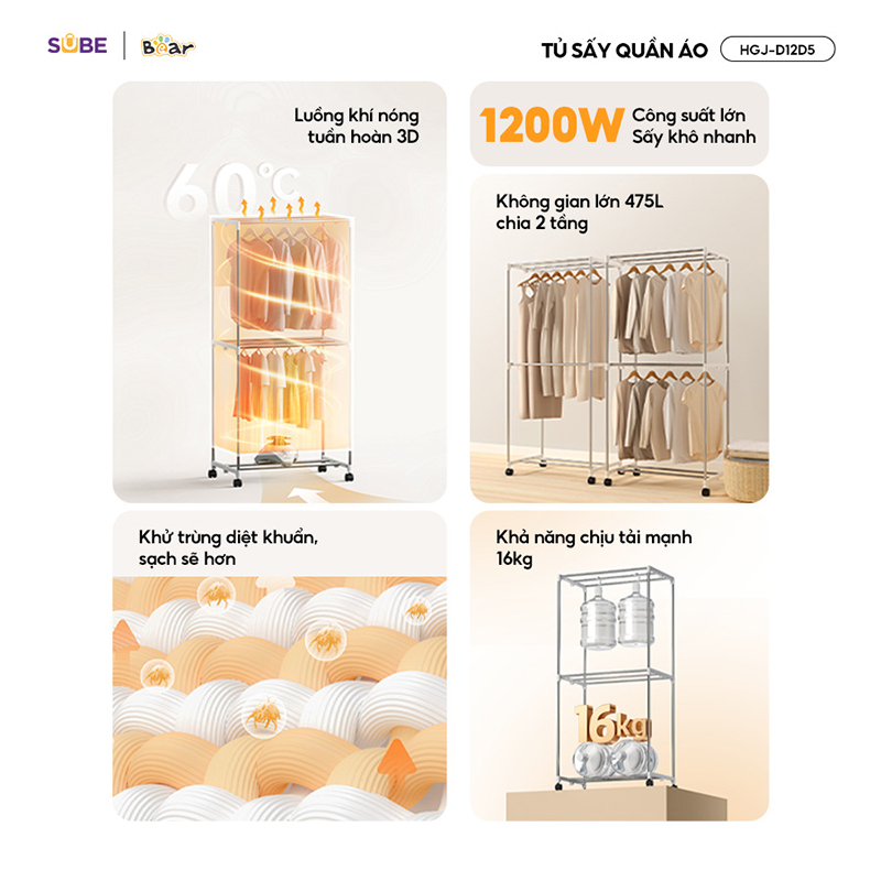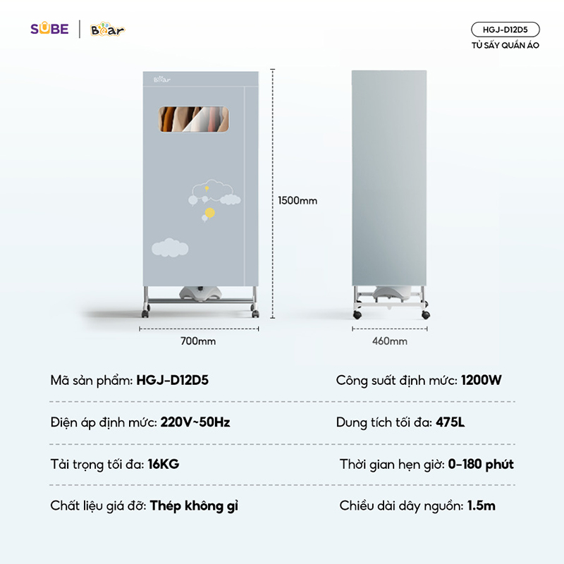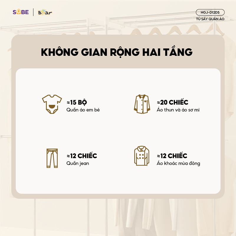 | Tên sản phẩm | Tủ sấy quần áo Bear HGJ – D12D5 |