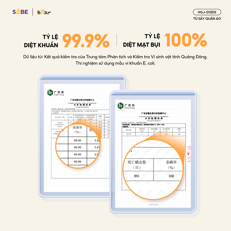 Tại nhiệt độ sấy 60 độ C, vi khuẩn và bụi bẩn trên vải đã được xác nhận loại bỏ lên đến 99.9% và 100%. Kết quả này được kiểm nghiệm bởi Trung tâm Phân tích và Kiểm tra Vi sinh vật tỉnh Quảng Đông.