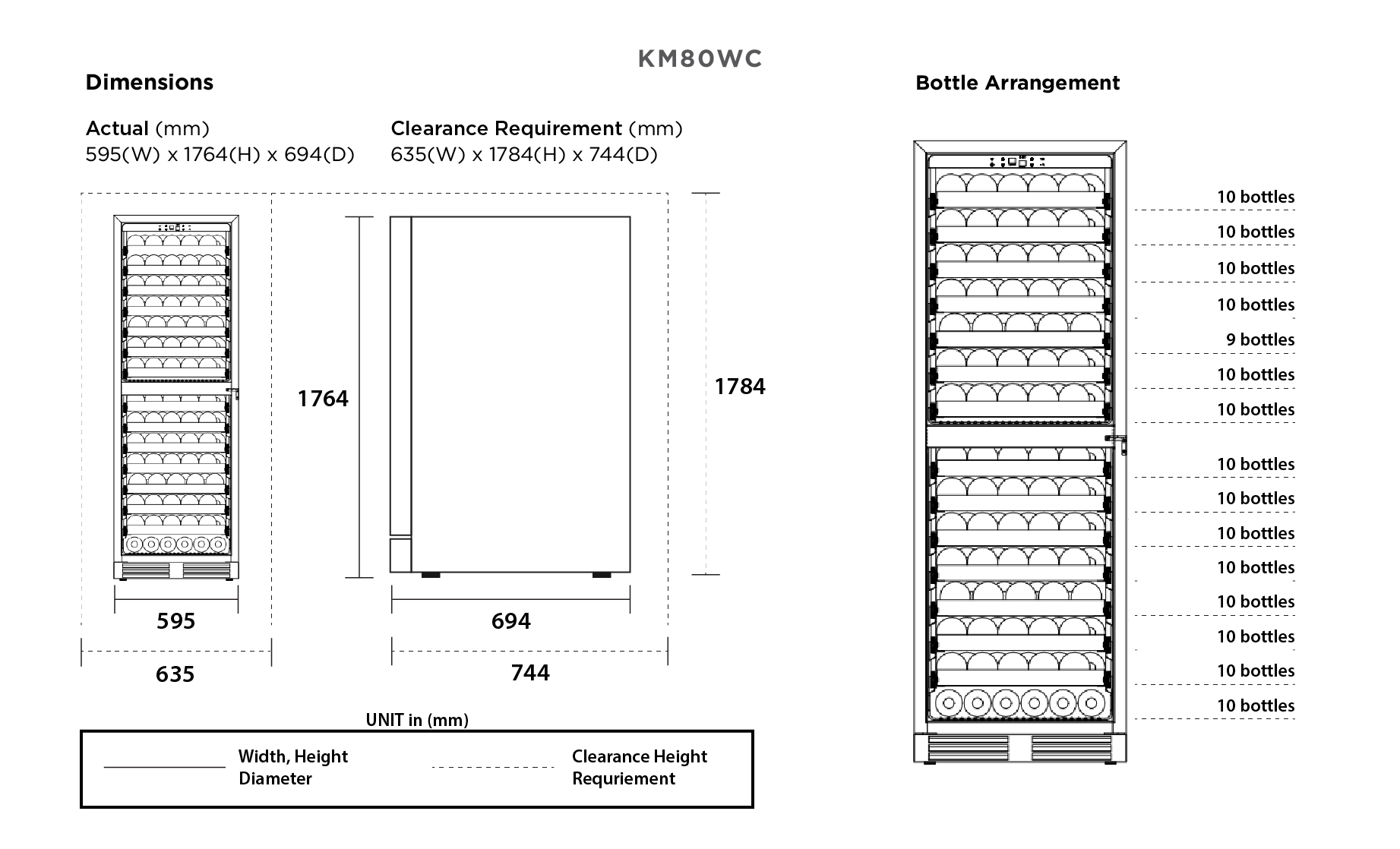 Sức chứa: KM80WBC 81 chai + 144 lon / 81 chai + 96 lon; KM80WC 141 chai